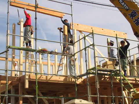 ※7 建物の四方に酒・塩・米をまいて清め上棟の儀を行います。