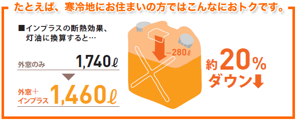 インプラスを取り付けることで断熱性がアップした住まいは、暖冷房が効きやすくとっても経済的。