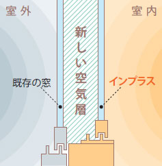 既存の窓と、内窓として取り付けたインプラス、さらにその間に生まれる新しい空気層が室外と室内をしっかり隔てる構造に。